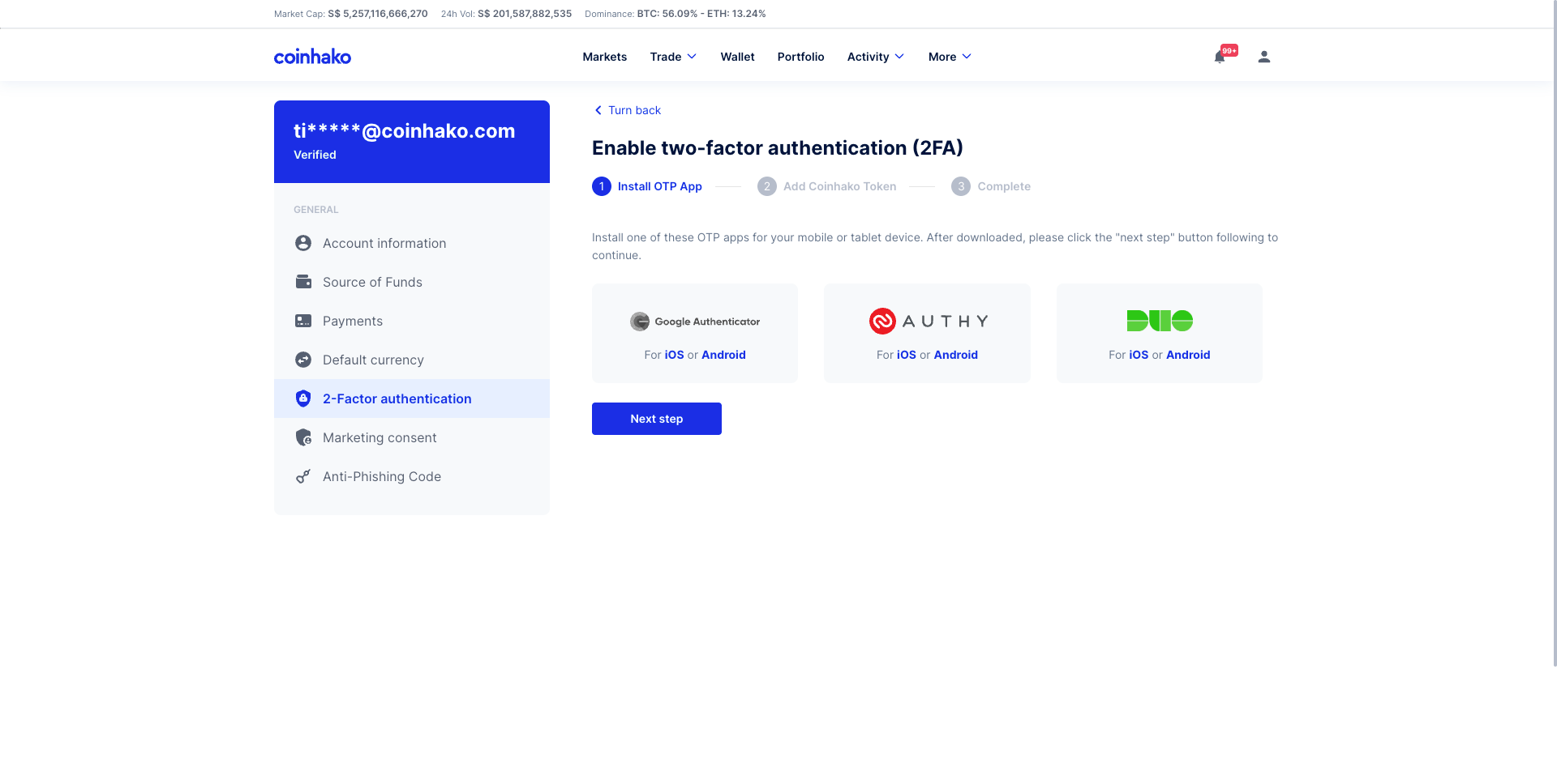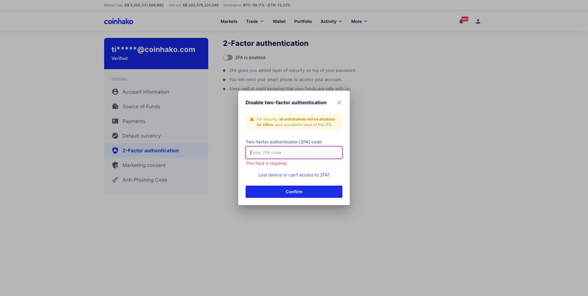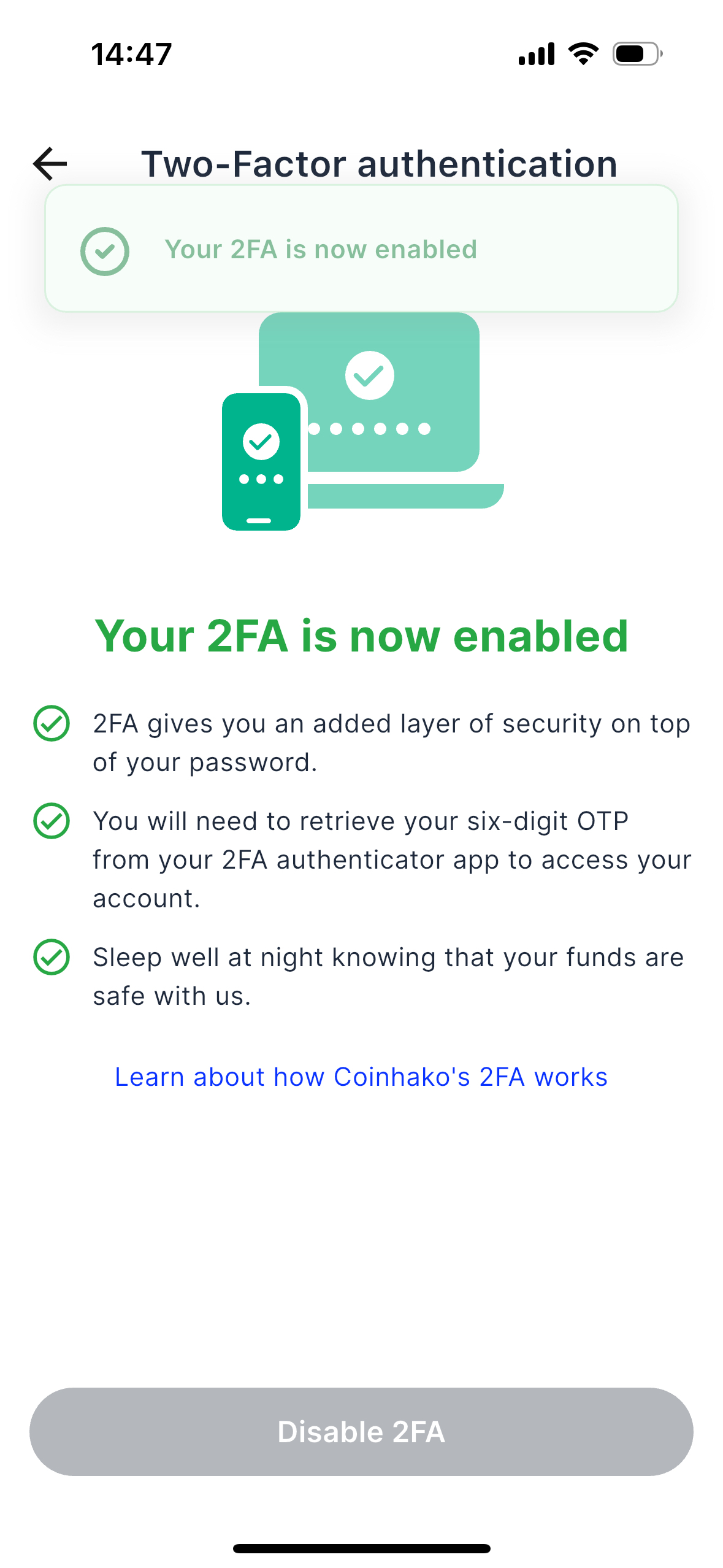 Starting 12 Sep 2025 (SGT), Coinhako logins will require 2FA. This follows MAS expectations for securing online financial services and protecting customers from unauthorised access and transactions. Please enable an authenticator app to continue using all services smoothly.