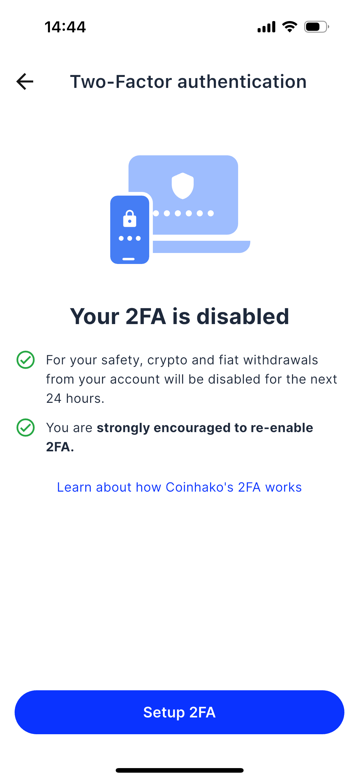 ⚠️ Head-up: For your safety, withdrawals are disabled for 24 hours after a 2FA reset.